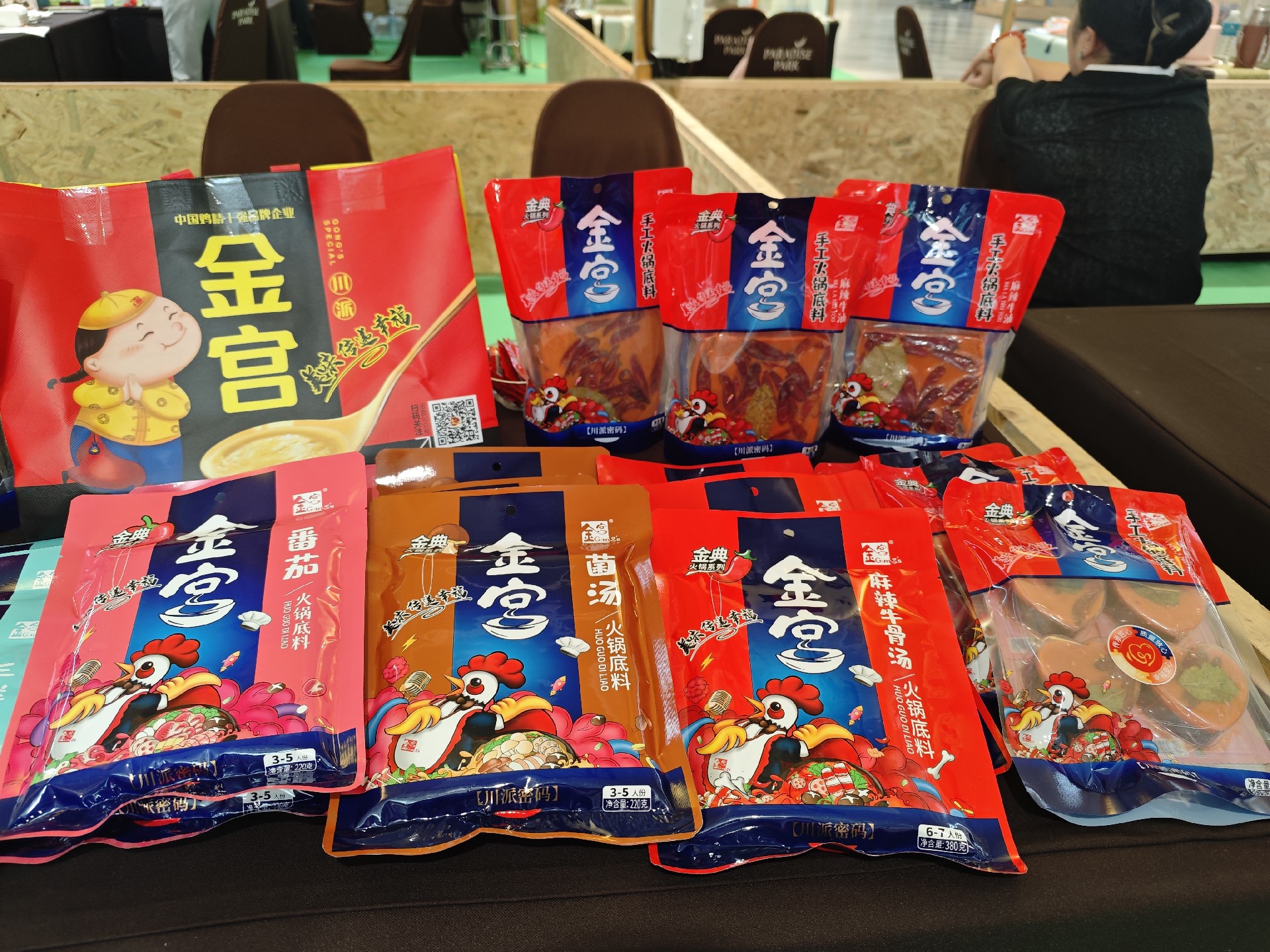 泰國水產(chǎn)資源豐富,旅游經(jīng)濟發(fā)達,消費者偏好重口味、酸辣鮮香的飲食風格,與四川菜系在風味上高度契合。金宮川派味業(yè)緊扣當?shù)厥袌鎏匦?,精心甄選適合泰國市場的核心產(chǎn)品陣容參展,包括金宮雞精、味精、火鍋底料、小龍蝦調(diào)料及川菜經(jīng)典調(diào)料(金宮魚香肉絲調(diào)料、回鍋肉調(diào)料、麻婆豆腐調(diào)料、紅油水餃調(diào)料)等,在現(xiàn)場獲得大量采購商與消費者的關(guān)注與青睞。其中,新品系列尤為亮眼:金宮香辣蘸料、燒雞公調(diào)料、青花椒嫩魚調(diào)料、香辣魚調(diào)料等風味獨特、味美價優(yōu)、泰國餐飲企業(yè)與零售采購商重點關(guān)注,表達出強烈合作意向。