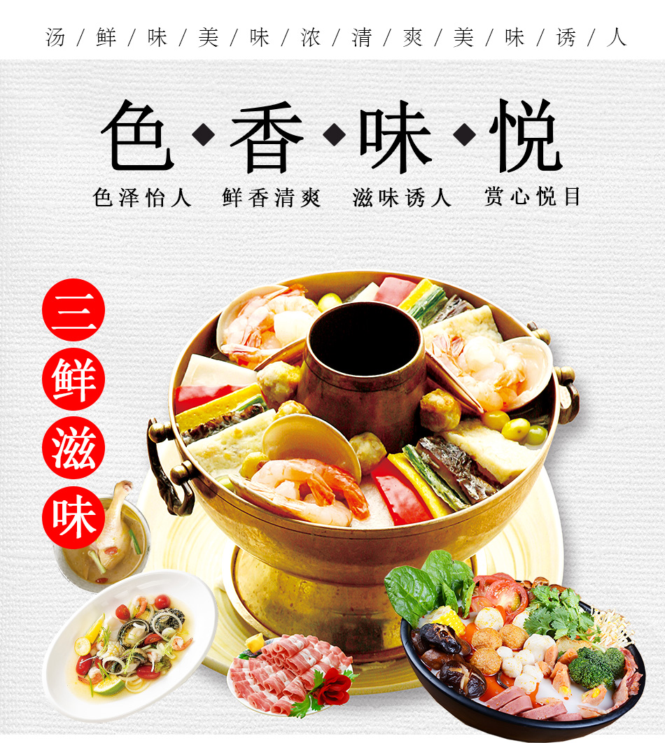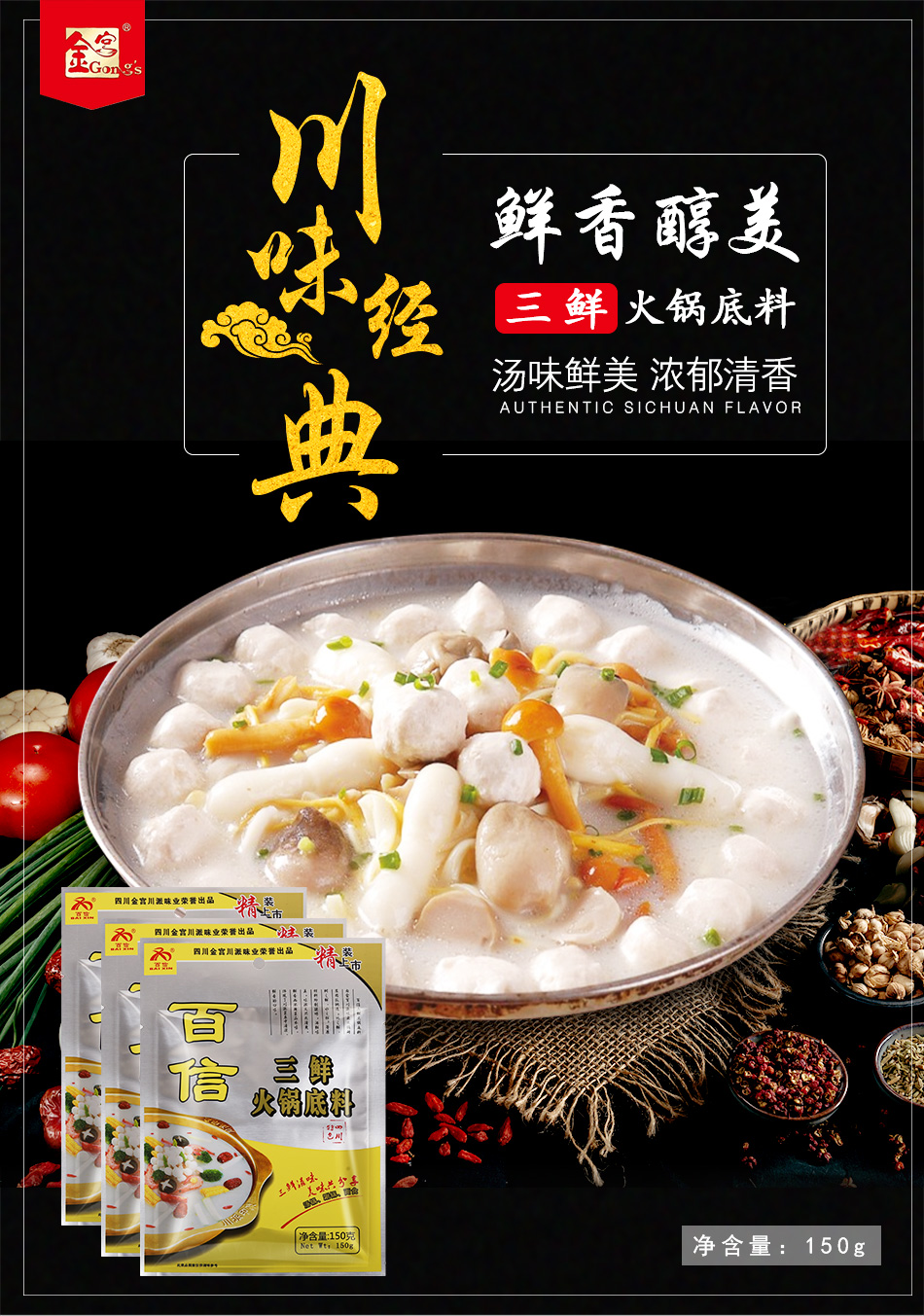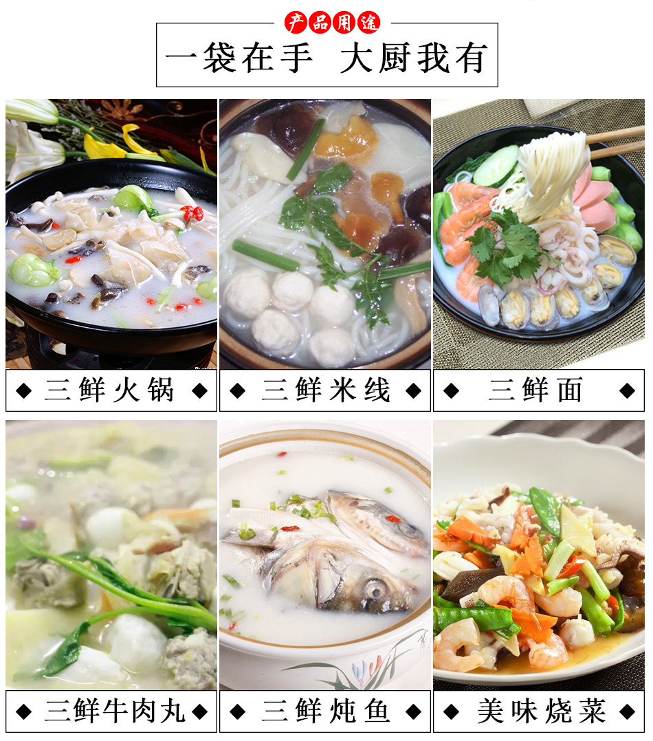 產(chǎn)品簡(jiǎn)介:百信三鮮火鍋底料是采用天然原料,經(jīng)川派火鍋特級(jí)配料師多年潛心研究、反復(fù)實(shí)驗(yàn)而開發(fā)出的新派火鍋底料。以科學(xué)配方,結(jié)合現(xiàn)代制作工藝,在繼承傳統(tǒng)火鍋特點(diǎn)的基礎(chǔ)上,體現(xiàn)新一代三鮮底料濃郁鮮香,湯醇味美的獨(dú)特風(fēng)味。