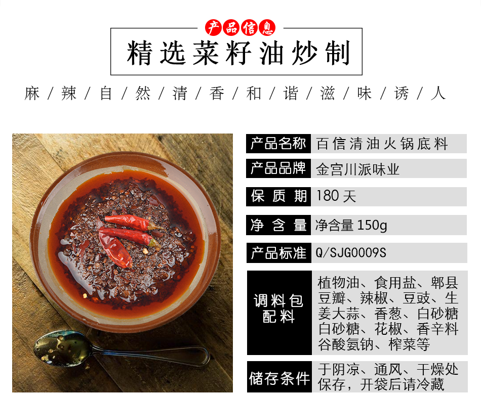百信清油火鍋底料-百信品牌-四川金宮川派味業(yè)有限公司_金宮,金宮雞精,金宮味精,金宮火鍋底料,金宮香腸臘肉調料,金宮小龍蝦調料,金宮魚調料,金宮調料定制,金宮調味品定制-四川金宮川派味業(yè)有限公司_金宮,金宮雞精,金宮味精,金宮火鍋底料,金宮香腸臘肉調料,金宮小龍蝦調料,金宮魚調料,金宮調料定制,金宮調味品定制