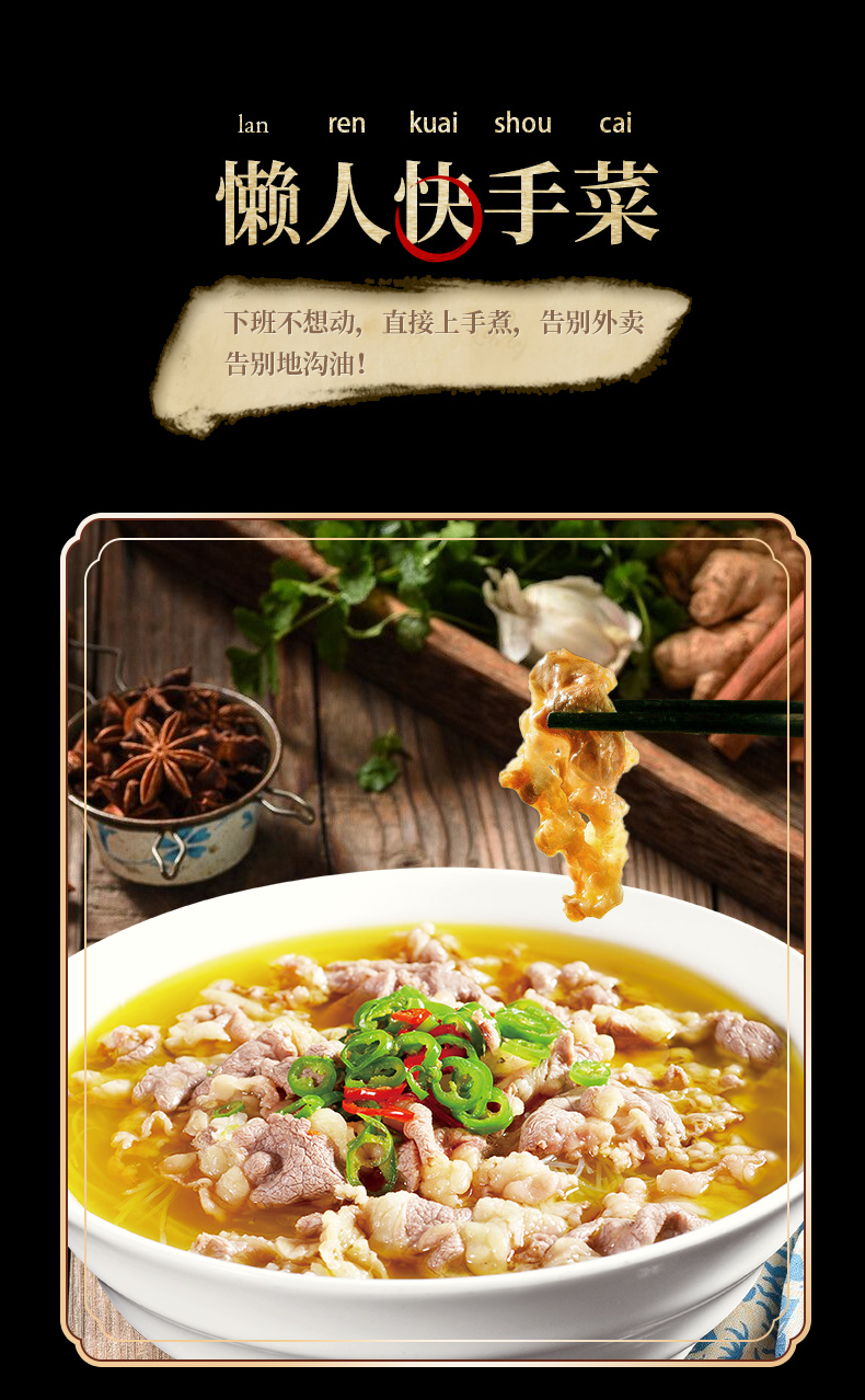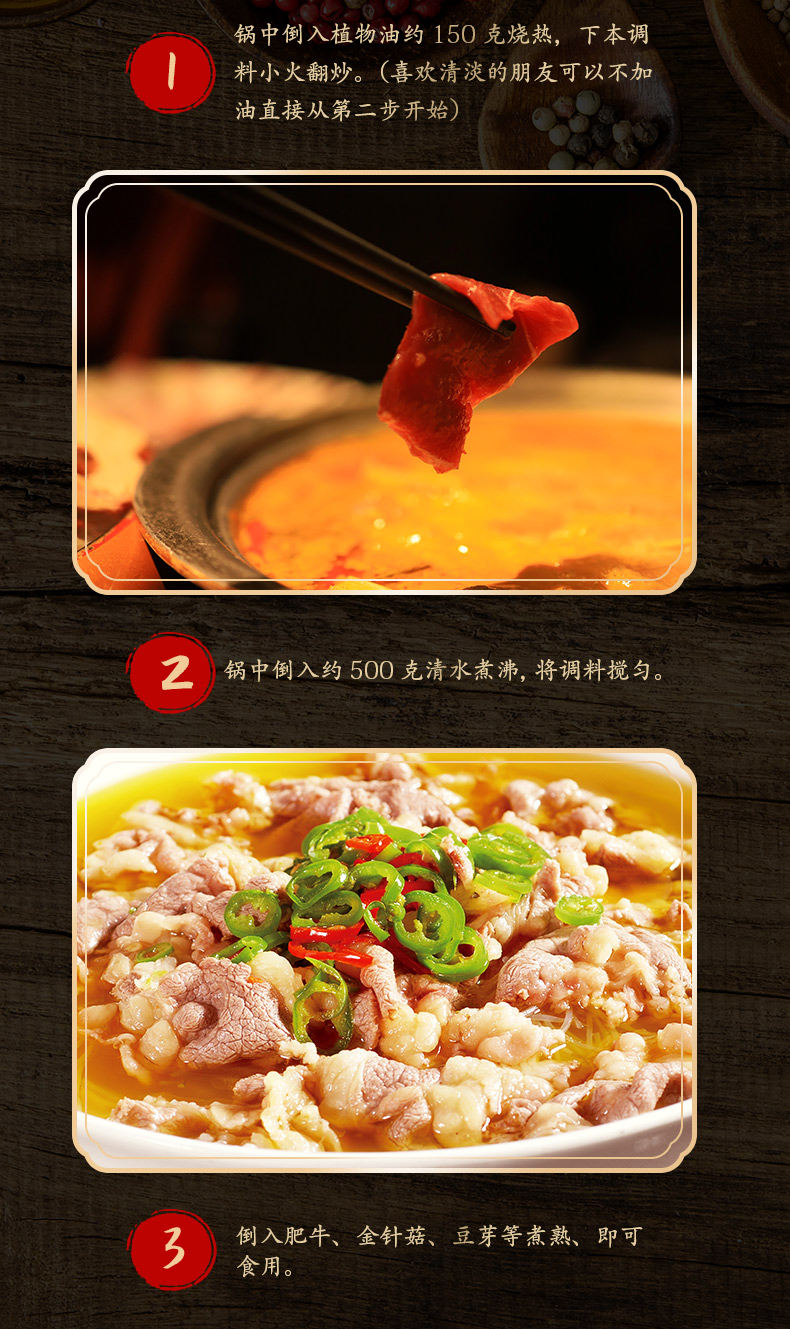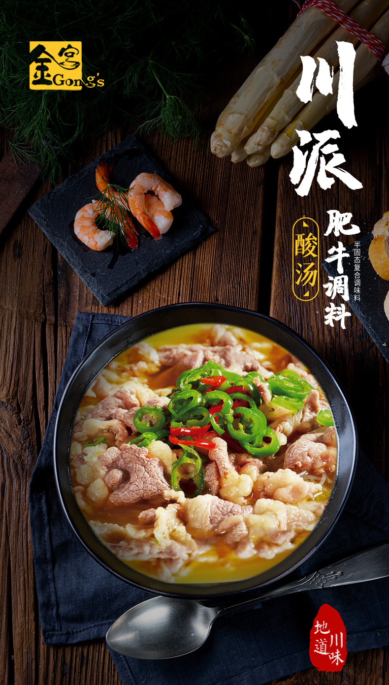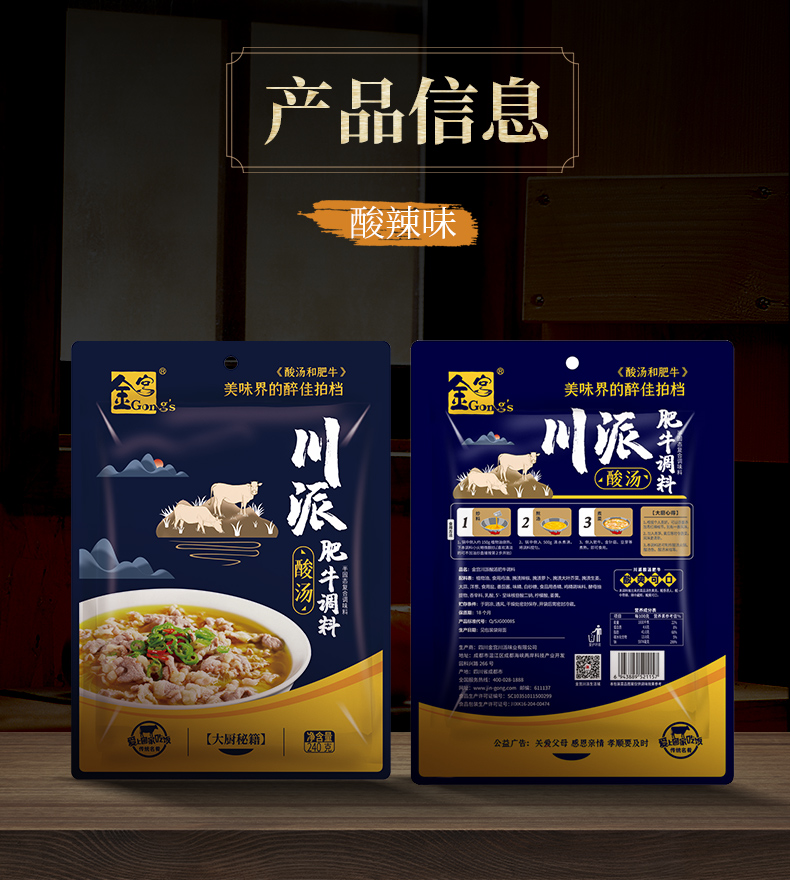 產(chǎn)品簡介:金宮川派酸湯肥牛調料,由金宮川派公司川菜研發(fā)團隊采用現(xiàn)代食品加工技術,創(chuàng)新研制。本調料做出來的菜品湯色黃亮、酸香誘人、酸中帶辣、辣中藏鮮、酸爽可口。