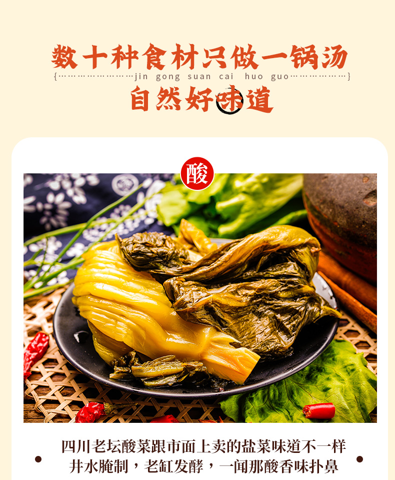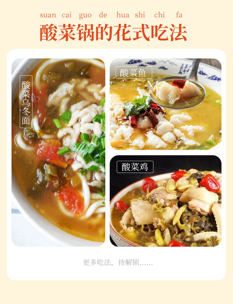 產(chǎn)品特點:酸香爽脆、湯濃醇鮮