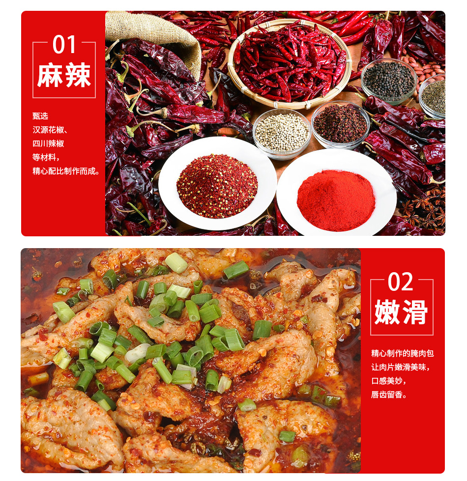 產(chǎn)品特點:麻辣鮮嫩,川味十足