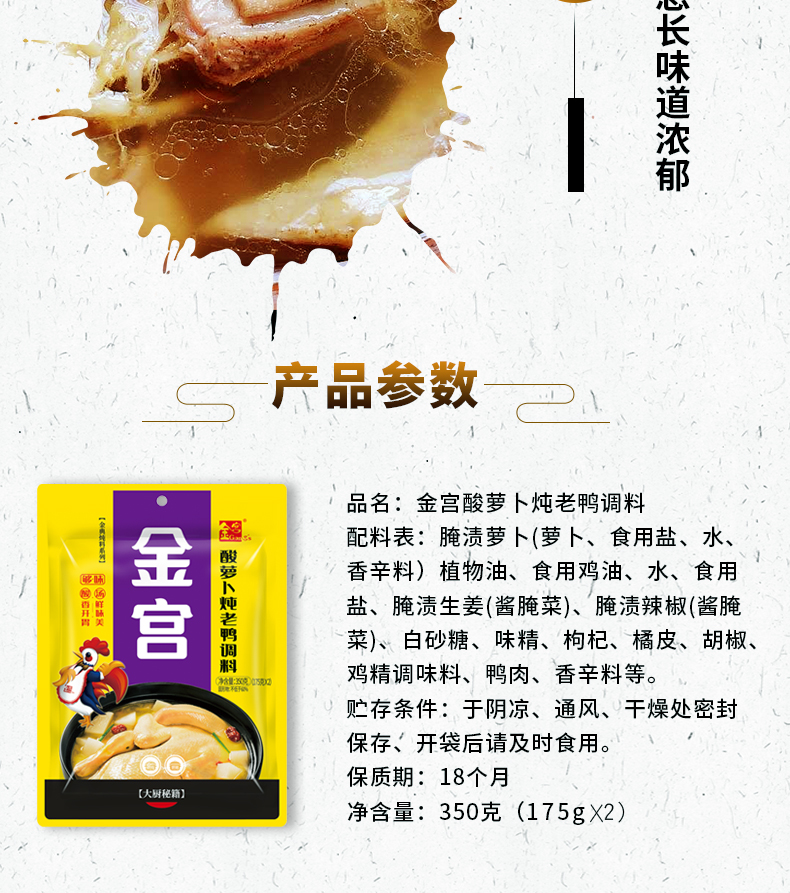 金宮酸蘿卜燉老鴨湯-金宮品牌-四川金宮川派味業(yè)有限公司_金宮,金宮雞精,金宮味精,金宮火鍋底料,金宮香腸臘肉調(diào)料,金宮小龍蝦調(diào)料,金宮魚調(diào)料,金宮調(diào)料定制,金宮調(diào)味品定制-四川金宮川派味業(yè)有限公司_金宮,金宮雞精,金宮味精,金宮火鍋底料,金宮香腸臘肉調(diào)料,金宮小龍蝦調(diào)料,金宮魚調(diào)料,金宮調(diào)料定制,金宮調(diào)味品定制