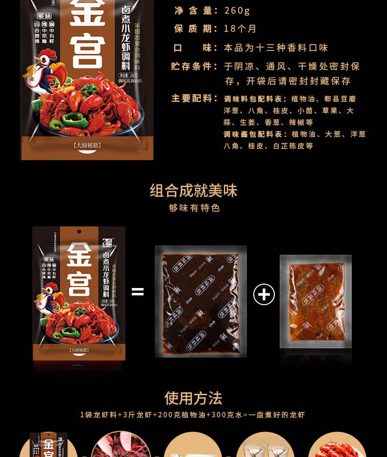 金宮鹵煮小龍蝦調(diào)料-金宮品牌-四川金宮川派味業(yè)有限公司_金宮,金宮雞精,金宮味精,金宮火鍋底料,金宮香腸臘肉調(diào)料,金宮小龍蝦調(diào)料,金宮魚(yú)調(diào)料,金宮調(diào)料定制,金宮調(diào)味品定制-四川金宮川派味業(yè)有限公司_金宮,金宮雞精,金宮味精,金宮火鍋底料,金宮香腸臘肉調(diào)料,金宮小龍蝦調(diào)料,金宮魚(yú)調(diào)料,金宮調(diào)料定制,金宮調(diào)味品定制