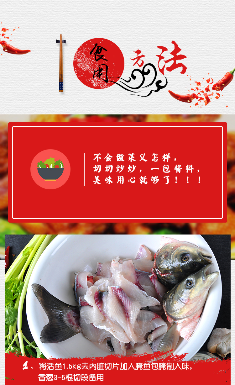 產(chǎn)品簡介:本產(chǎn)品腌魚包能使魚更嫩滑且不失本身鮮美,特別添加金源青花椒,特麻辣且絲毫不掩魚本身的鮮嫩。真是吃魚就要嫩,一口百味生。