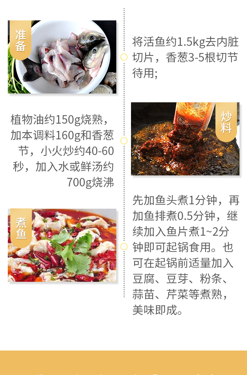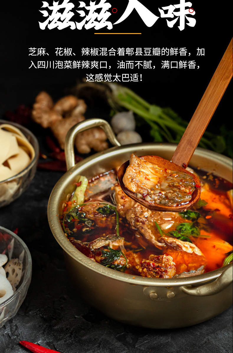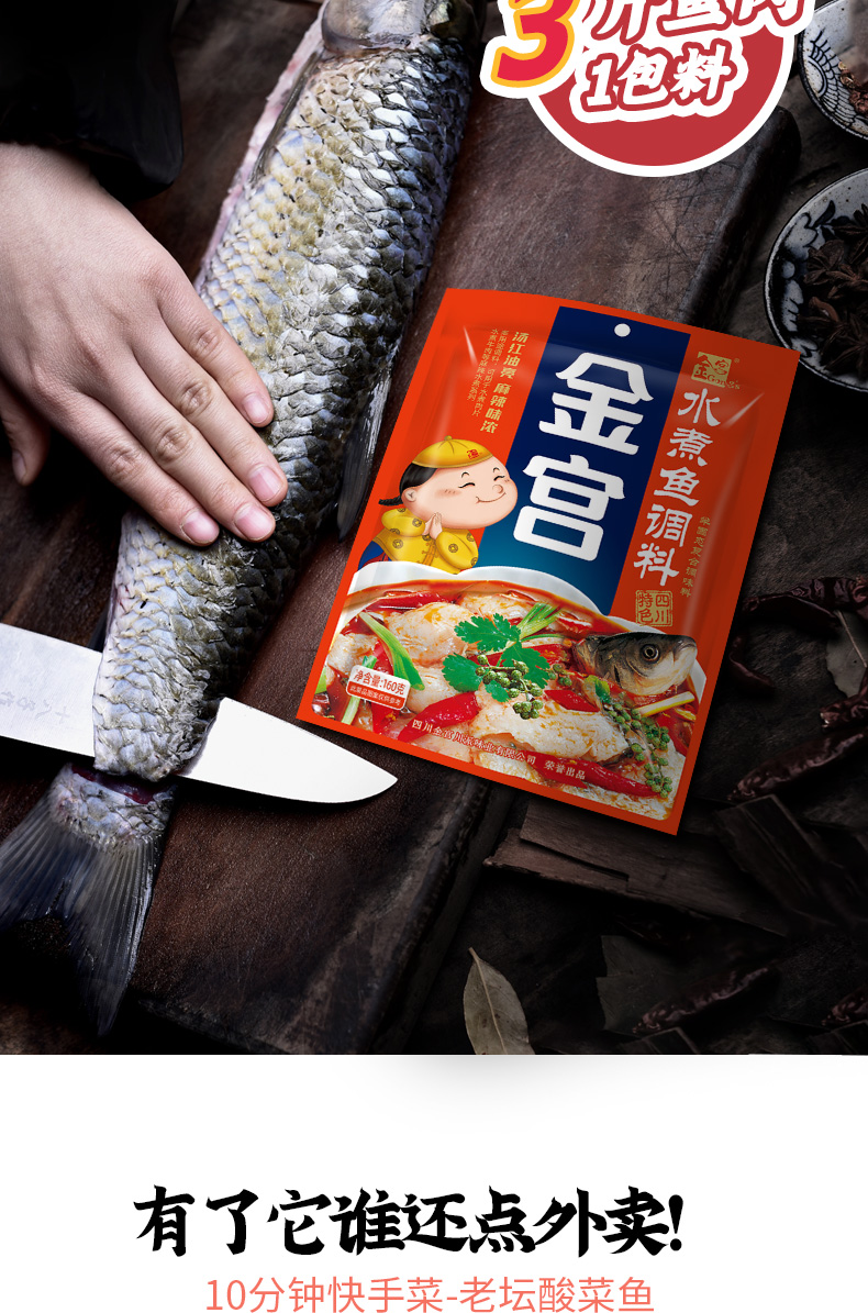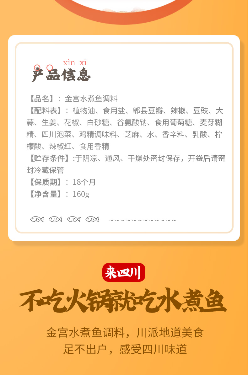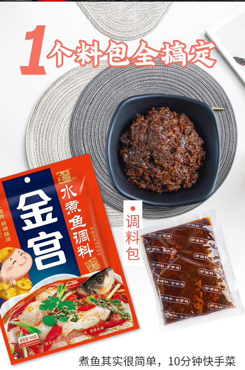 產(chǎn)品簡介:金宮水煮魚調(diào)料不僅可烹飪特色水煮魚,可用于水煮肉片、水煮牛肉等麻辣水煮系列,也可根據(jù)個(gè)人口味隨意添加辣椒、花椒,還可根據(jù)地方特色制作各種風(fēng)味獨(dú)特的水煮系列。